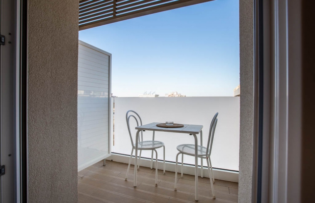 - balconcino coperto arredato con sedie e tavolino